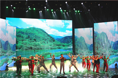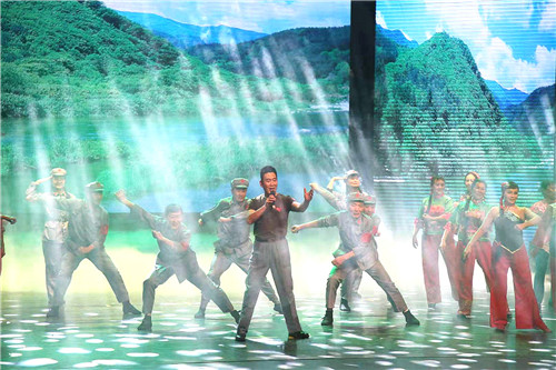 ? ? 9月24日晚,地礦集團公司慶祝中華人民共和國成立70周年《與祖國同行——奮進的地礦人》文藝晚會在西安人民劇院舉行。物化探隊選送的情景歌舞《紅星照我去戰斗》在舞臺上綻放異彩。