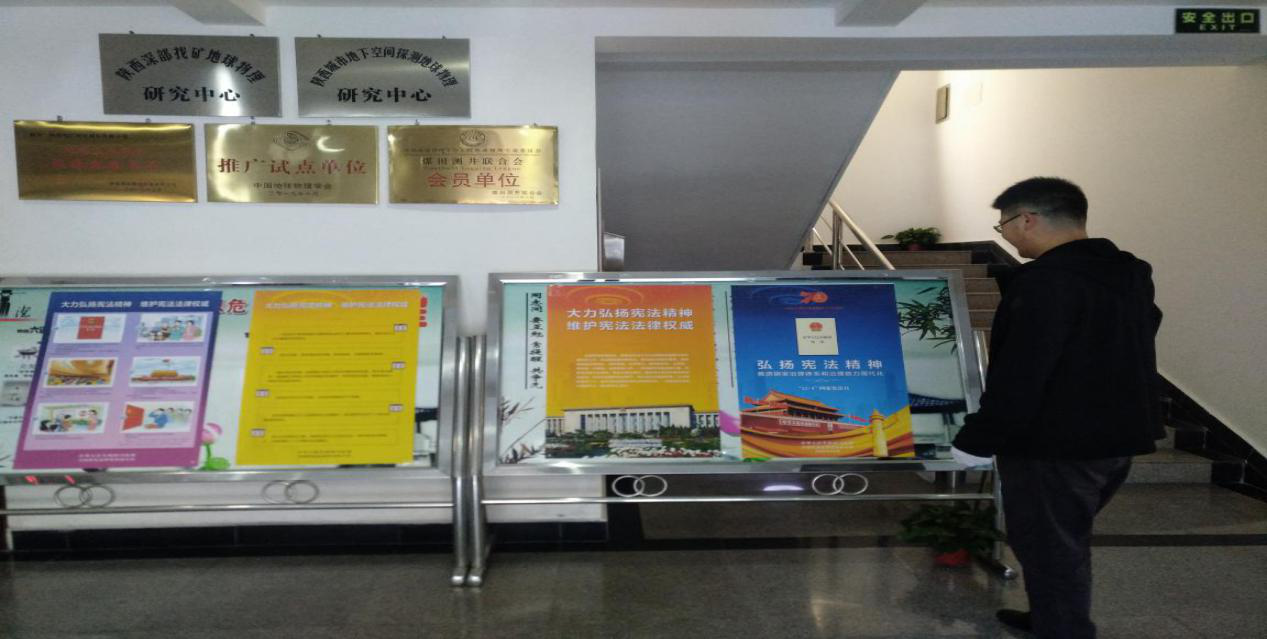 ? ? 活動主要以LED 電子顯示屏、展板宣傳、物探隊網站宣傳以及發放憲法書籍等方式引導廣大領導干部職工尊崇憲法、學習憲法、遵守憲法、維護憲法和運用憲法。