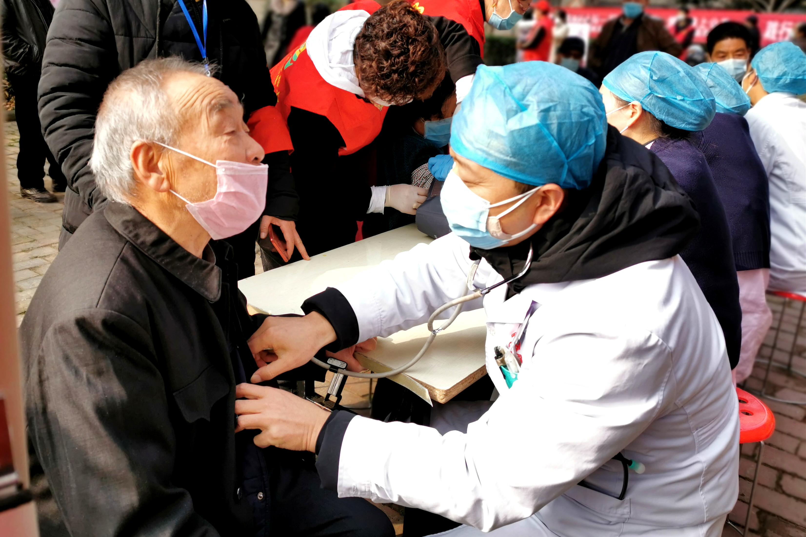 ? ? 診療志愿者同樣受到職工家屬的熱烈歡迎,量血壓、測心率、測血糖……還要不時停下來解答職工家屬的疑問,普及健康知識,叮囑大家要注意飲食、適當鍛煉、加強健康保健,快樂生活。