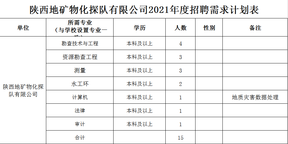 陜西地礦物化探隊(duì)有限公司2021年招聘計劃