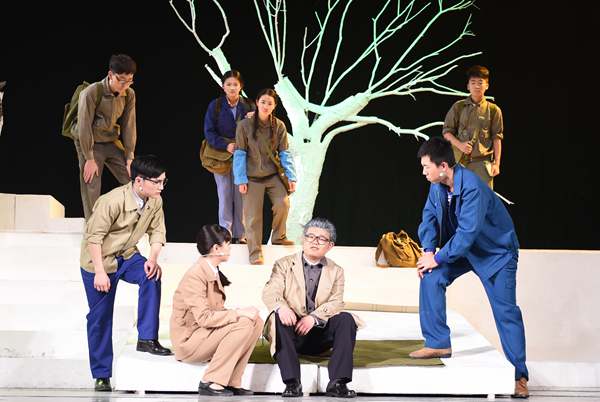 ? ? 場景中的小喇叭廣播再一次開始播報新聞,新聞的播報讓正拿著一堆科研手稿準備給自己老師的雅坤瞬間撲倒在地。是的也讓我們的心跟著揪起來,就算我們已經知道這位偉大的地質力學之父、共和國第一位地質部長、中國科學協會第一任主席、這面旗幟—李四光先生已經離世,但是我們還是為這小喇叭播報李四光先生的隕逝而悲痛。雅坤逐漸在兄弟廣生的悲劇和老師去世的陰影中走了出來,踏著老師的足跡帶著兄弟的夢想依然在科研工作中奮戰,繼續發展老師的研究成果。到此話劇《大地之光》已經結束,可李四光先生精神魅力猶如他的名字一樣光照四方!