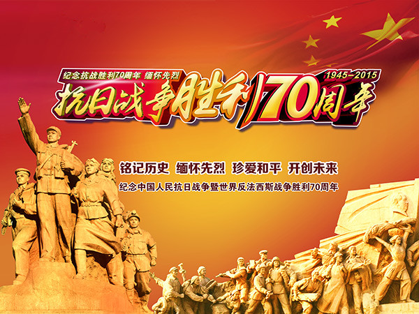 ? ? 2015年是中國人民抗日戰爭暨世界法法西斯戰爭勝利70周年。70年前,中國人民經過八年艱苦卓絕的抗戰,取得了抗日戰爭的偉大勝利,為世界反法西斯戰爭的勝利做出了巨大貢獻。半個多世紀以前,在國家和民族危難之際,面對兇惡的日本侵略者,中華人民同仇敵愾,眾志成城,前赴后繼,英勇斗爭,展開了一場波瀾壯闊的全民族的偉大抗戰,用鮮血和生命譜寫了正義戰勝邪惡、光明戰勝黑暗的英雄史詩。