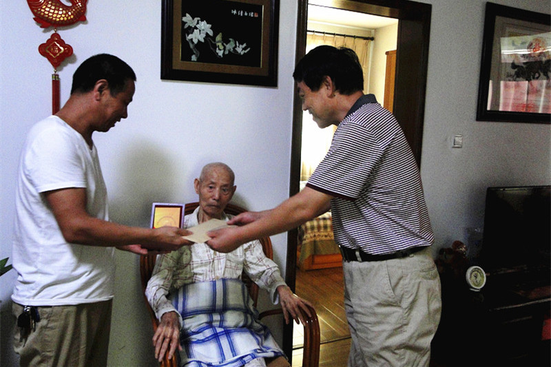 ? ? 黨委書記賀志銀先后看望了高登昌和余道元二位老人,每到一處,賀書記都親切詢問老人的家庭情況和身體狀況,并送上“中國人民抗日戰爭勝利70周年紀念章”和慰問金,向老同志致以敬意和問候,送上祝福,并叮囑隨行的有關部門負責人,要帶著感情做好老干部工作,對他們在政治上關心、生活上照顧,讓他們安享晚年。