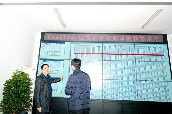 ??? 趙廷周一行實(shí)地參觀了地質(zhì)災(zāi)害監(jiān)測(cè)預(yù)警中心“RealTime地質(zhì)災(zāi)害智能監(jiān)測(cè)預(yù)警系統(tǒng)”,并詳細(xì)了解了智能監(jiān)測(cè)預(yù)警系統(tǒng)工作平臺(tái)的運(yùn)行情況。趙廷周對(duì)物化探隊(duì)加大技術(shù)創(chuàng)新力度、加強(qiáng)地質(zhì)災(zāi)害評(píng)估和勘查能力建設(shè)所取得的成績(jī)給予充分肯定。同時(shí)希望物化探隊(duì)將技術(shù)優(yōu)勢(shì)更多地應(yīng)用于工作實(shí)踐,不斷開拓新領(lǐng)域,達(dá)到新高度,實(shí)現(xiàn)新發(fā)展,艱苦奮斗再創(chuàng)業(yè),在踐行“三個(gè)地礦”的征程中取得新的更大的成績(jī)。