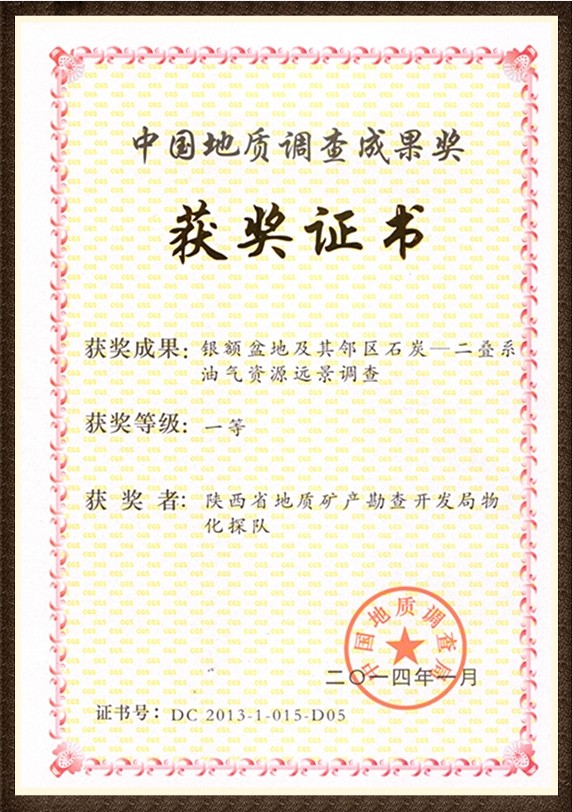 物化探分公司“銀額物化探”項(xiàng)目榮獲中國地質(zhì)調(diào)查成果一等獎(jiǎng)