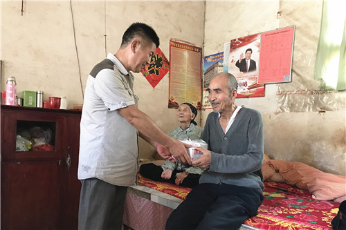 ? ? 15日一大早,機(jī)關(guān)支部黨員代表7人帶著支部全體黨員的重托,趕赴扶風(fēng)縣天度鎮(zhèn)天度村,在集團(tuán)公司駐天度村扶貧第一書(shū)記蘇小強(qiáng)同志的引導(dǎo)下,把輪椅送到了貧困戶(hù)馬治禮家中,給年近8旬的貧困戶(hù)王養(yǎng)門(mén)和老伴強(qiáng)茸堂送去了治療心臟病和眼睛疾病的藥品,兩位失明老人心情格外激動(dòng),緊緊拉著黨員同志的手說(shuō):感謝你們的關(guān)心,黨的扶貧政策太好了,我們才有了活下去的信心。
